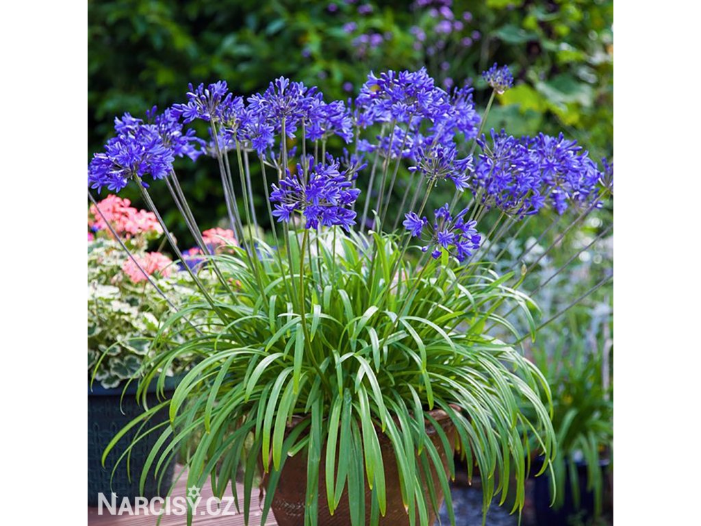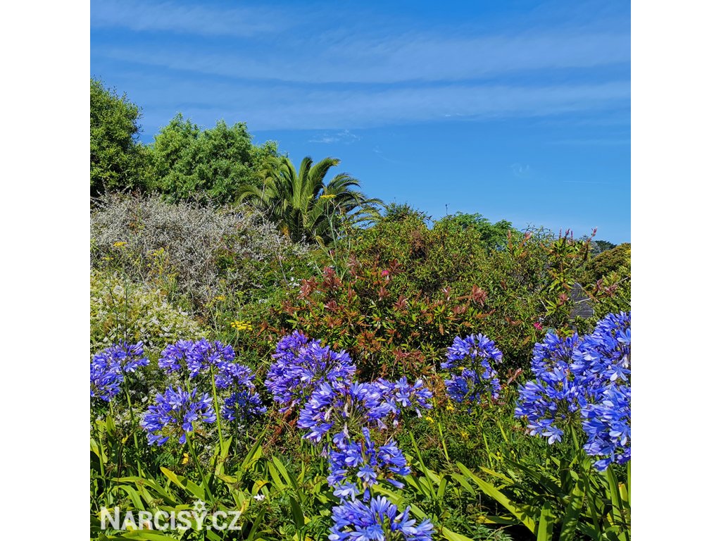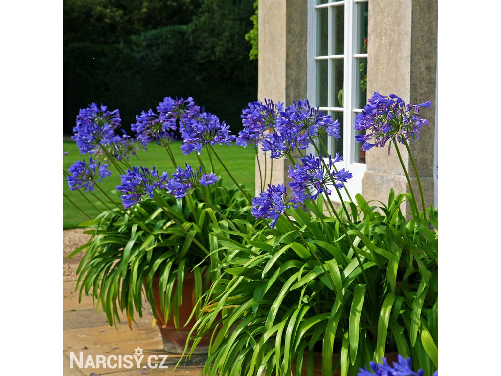 Kalokvěty - Agapanthus - až 200 voňavých květů v jednom květenství na velmi pevném stonku vyrůstající mezi řemenovitými listy. Zcela nenáročná. Nejlépe je jim v nádobách v létě na plném slunci, v zimě přenesené do bezmrazého prostoru. Skvěle se předvádí i přímo v zemi v sestavě trvalkového záhonu, ale na zimu je třeba je uklidit. Venku nepřezimují. Výborné jsou k řezu ve smíšených kyticích. Jedna z nejoblíbenějších hlíznatých květin v přenosných nádobách. Dodáváme prostokořenné sazenice bez zeminy a bez listů.