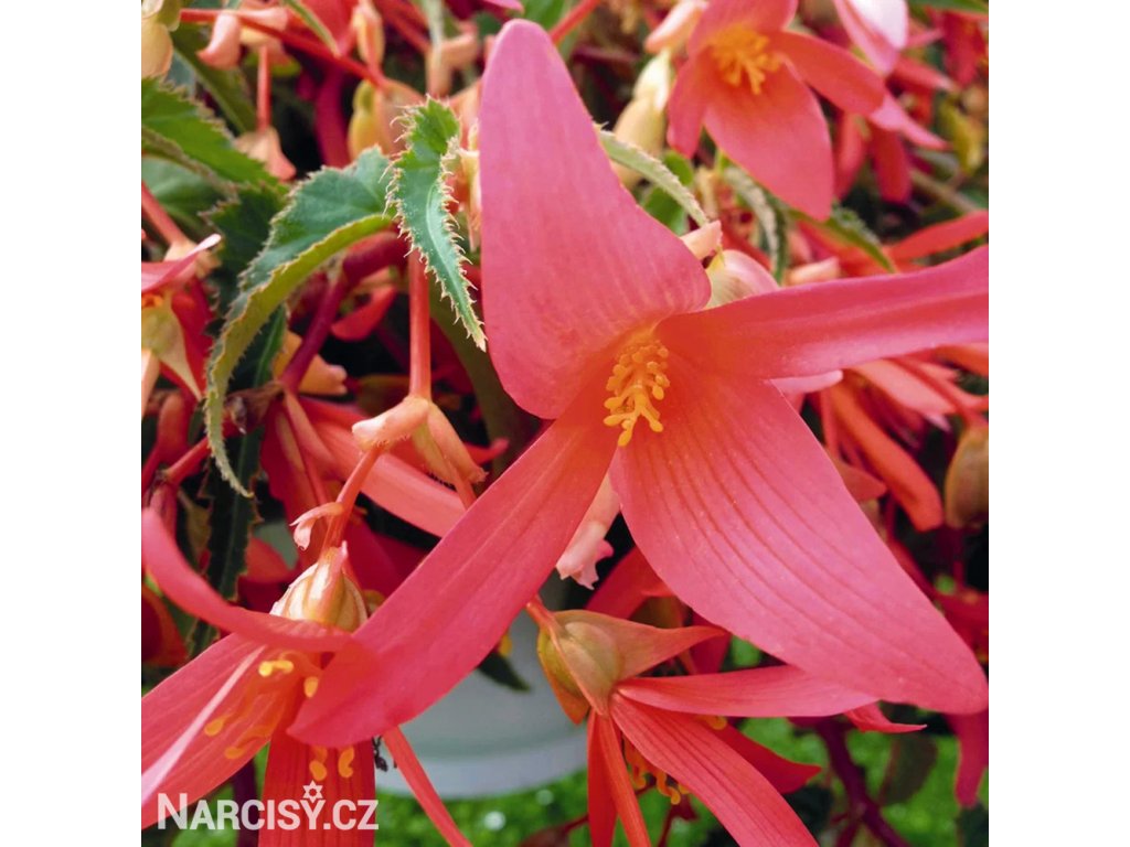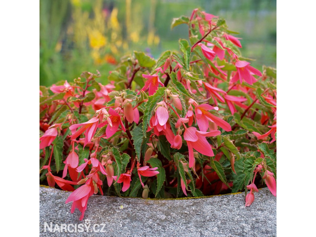 Nejoblíbenější truhlíkové a terasové květiny do stínu. Záplava květů, jistota kvetení a snadné pěstování. Hlízy nejlépe vysadíme již na jaře (od února do dubna) velmi mělce do květináče nebo truhlíku a ven je umístíme až v polovině května. Při výsadbě rovnou ven v průběhu května také skvěle kvetou, ale trochu se zpožděním. Potřebují zastínění a lehčí zeminu s pískem, milují časté hnojení. V průběhu září až října hlízy narůstají a chystají se na zimní odpočinek, je dobré je nechat venku až do prvních mrazů a poté je umístit v bezmrazé místnosti. Nejlépe je vyjmout ze země, zabalit do novin a umístit v suché, chladné místnosti do 10 °C kde snadno přezimují. Dodáváme hlízy bez listů a kořenů.