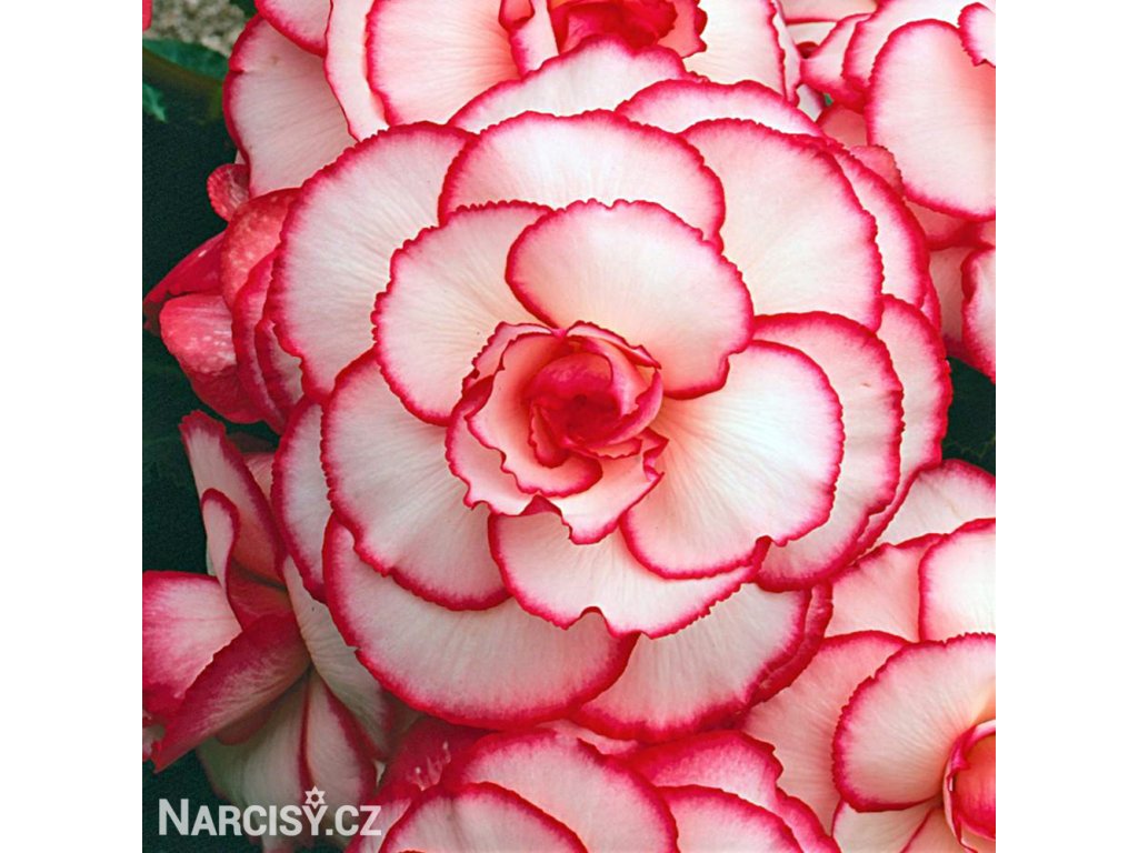 Červenobílá picotee begónie patří mezi naše nejoblíbenější odrůdy. Neúnavně kvetoucí, zcela nenáročná.
