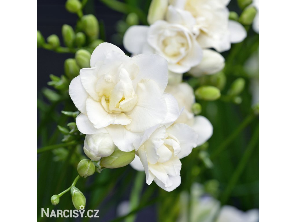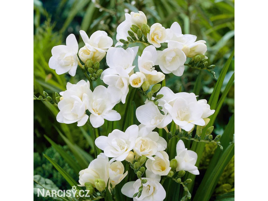 Plnokvětá bílá frézie s květenstvím až deseti květů a nezaměnitelnou vůní.