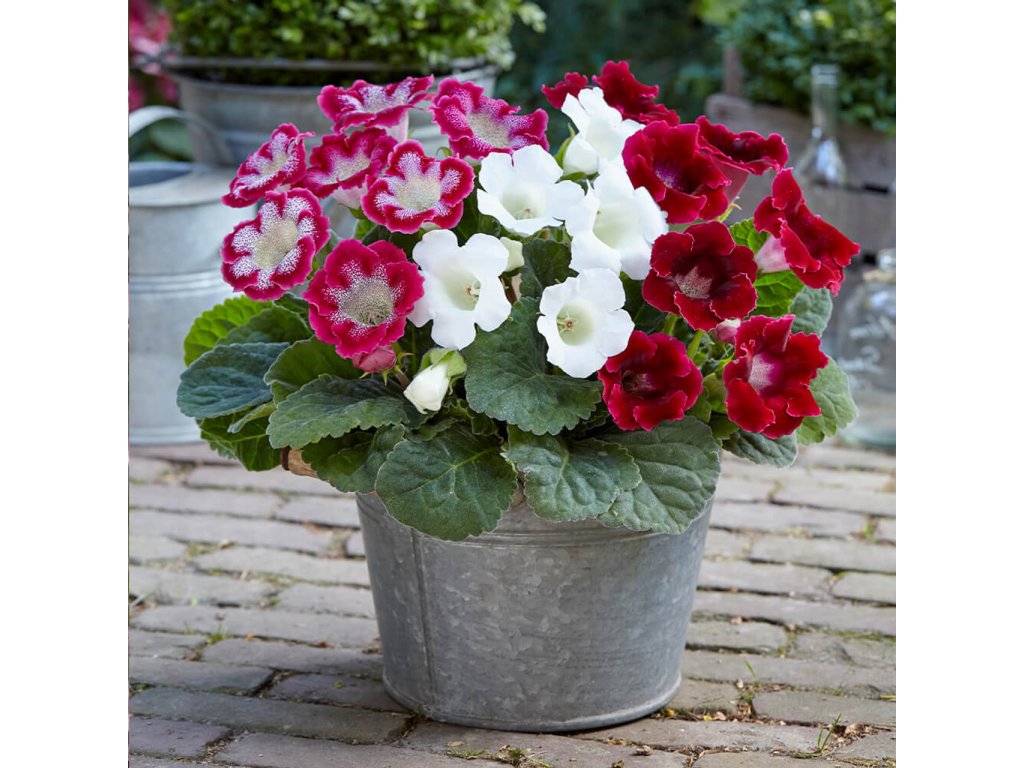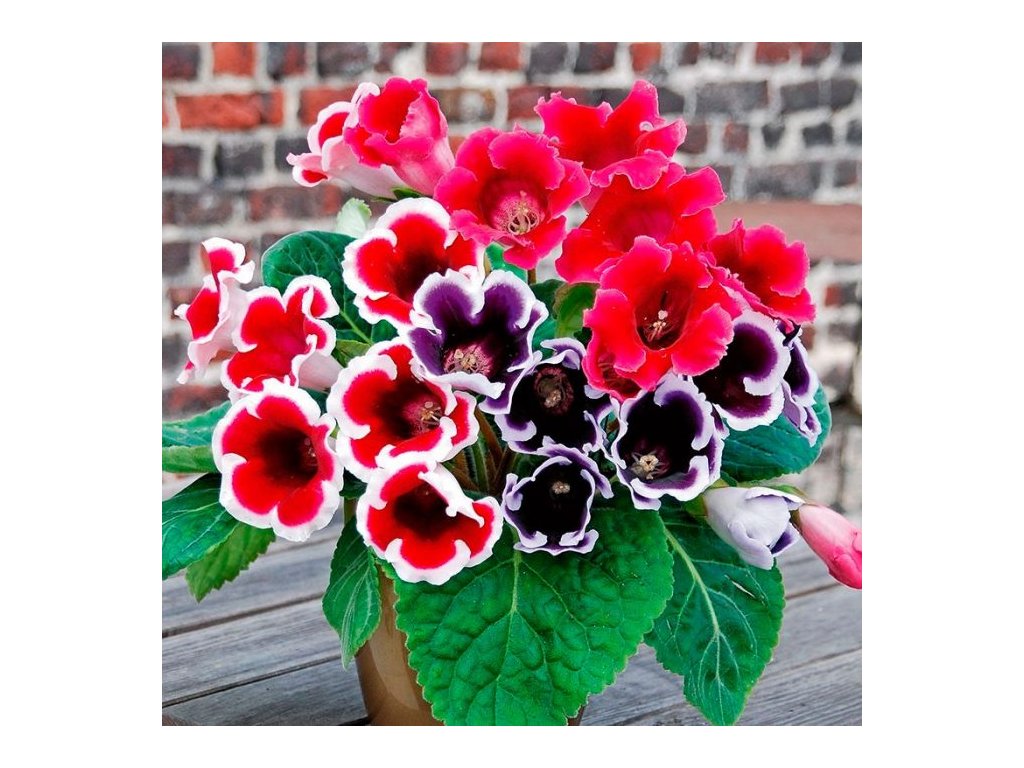 Gloxínie (Sinningia speciosa) je okrasná rostlina, známá pro své velké, barevné květy, které připomínají květy fialek. Pochází z tropických oblastí Jižní Ameriky a je oblíbená pro své krásné, zvonkovité květy, které mohou být červené, růžové, bílé, fialové nebo modré. Rostlina má také atraktivní, široké, sametově zelené listy, které dodávají celkový vzhled bohatosti.