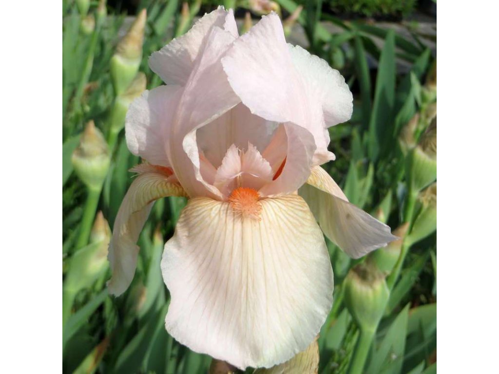 Ohromující kosatec s elegantními světle broskvovými květy s nádechem bronzu. Mírná vůně a vysoké listy podobné meči. Zcela spolehlivý německý kosatec. Výška 70-80 cm.