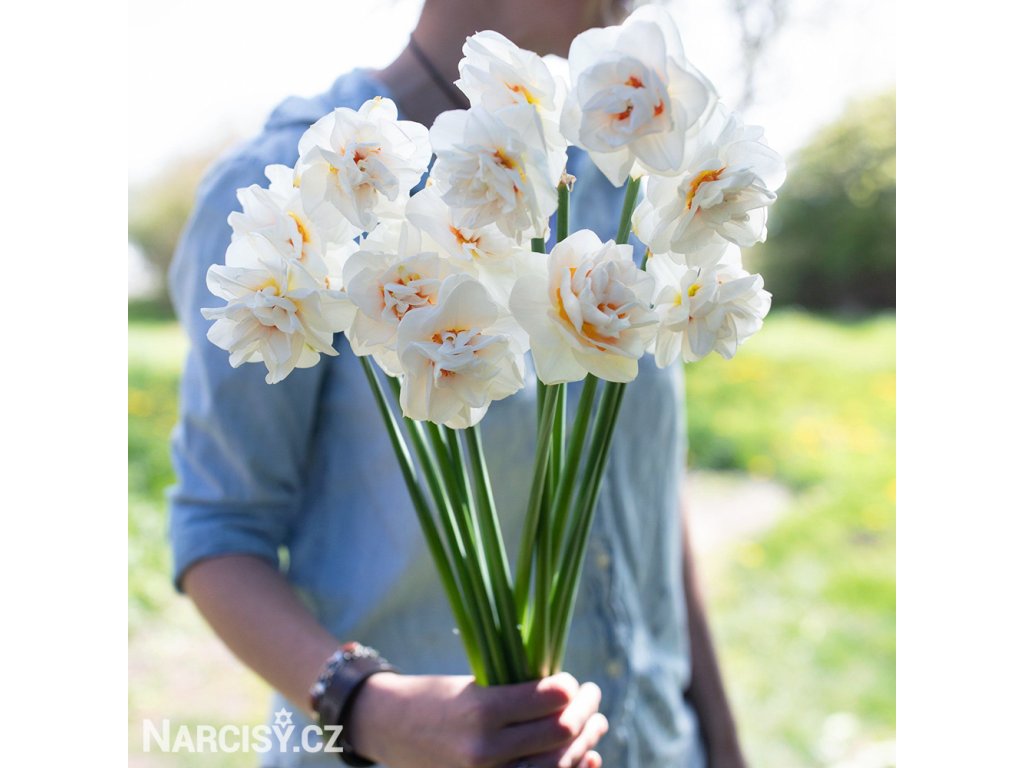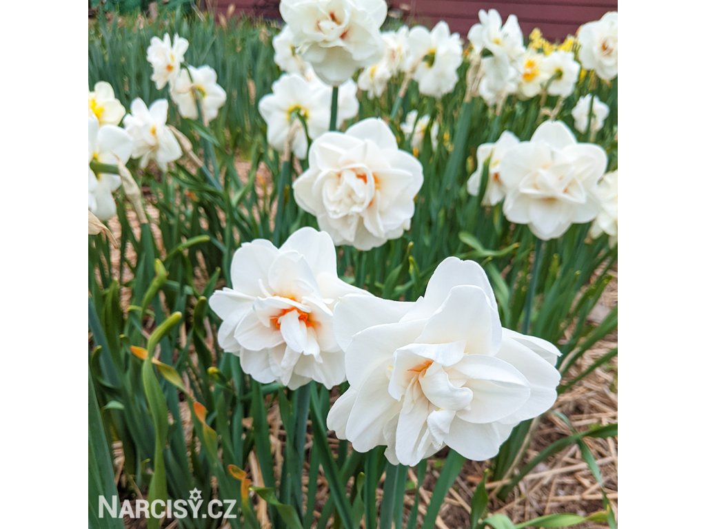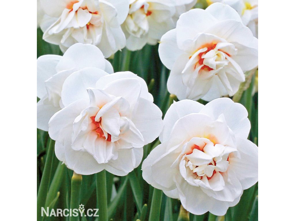 Acropolis je pozoruhodný narcis s čistě bílými lístky doplněné červenými vnitřními prvky ve velikém květu. Výška 45 cm.