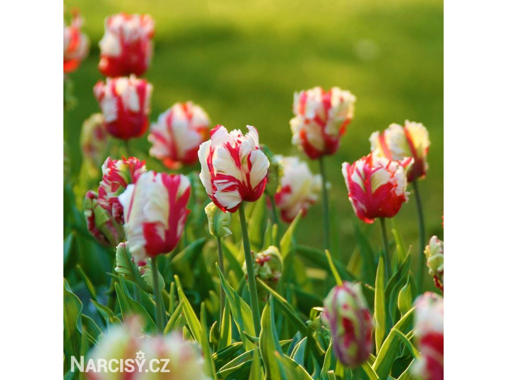 Papouškovité tulipány - unikátní, často vícebarevné květy na pevném stonku. Kvetou od poloviny "tulipánové sezóny" - v dubnu až květnu.