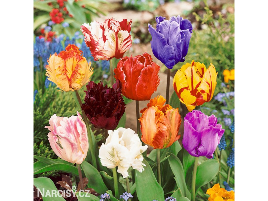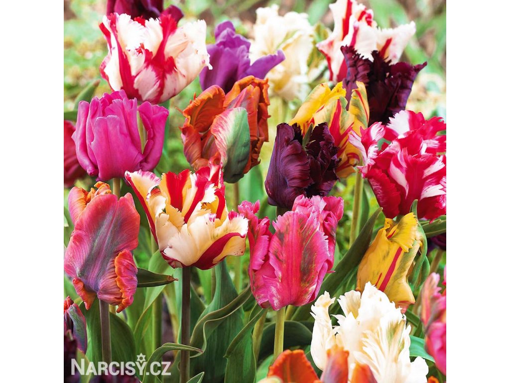 Papouškovité tulipány - unikátní, často vícebarevné květy na pevném stonku. Kvetou od poloviny "tulipánové sezóny" - v dubnu až květnu.