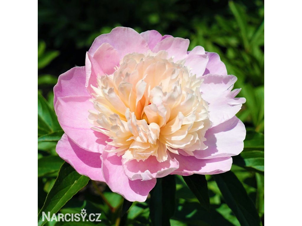 Nádherná růžovo-krémová pivoňka s obrovskými květy postupně měnící svou barvu. Výška až 100 cm.