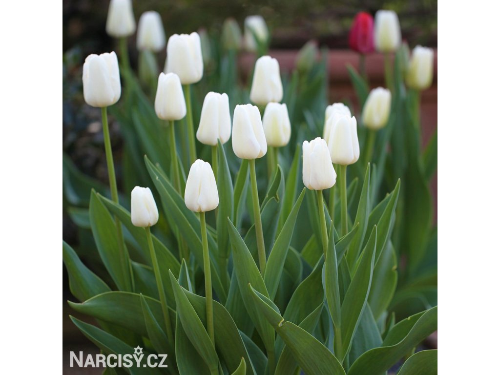 Čistě bílý tulipán ze skupiny Triumph. Asi nejčistší tulipán v naší nabídce. Výška 50 cm.